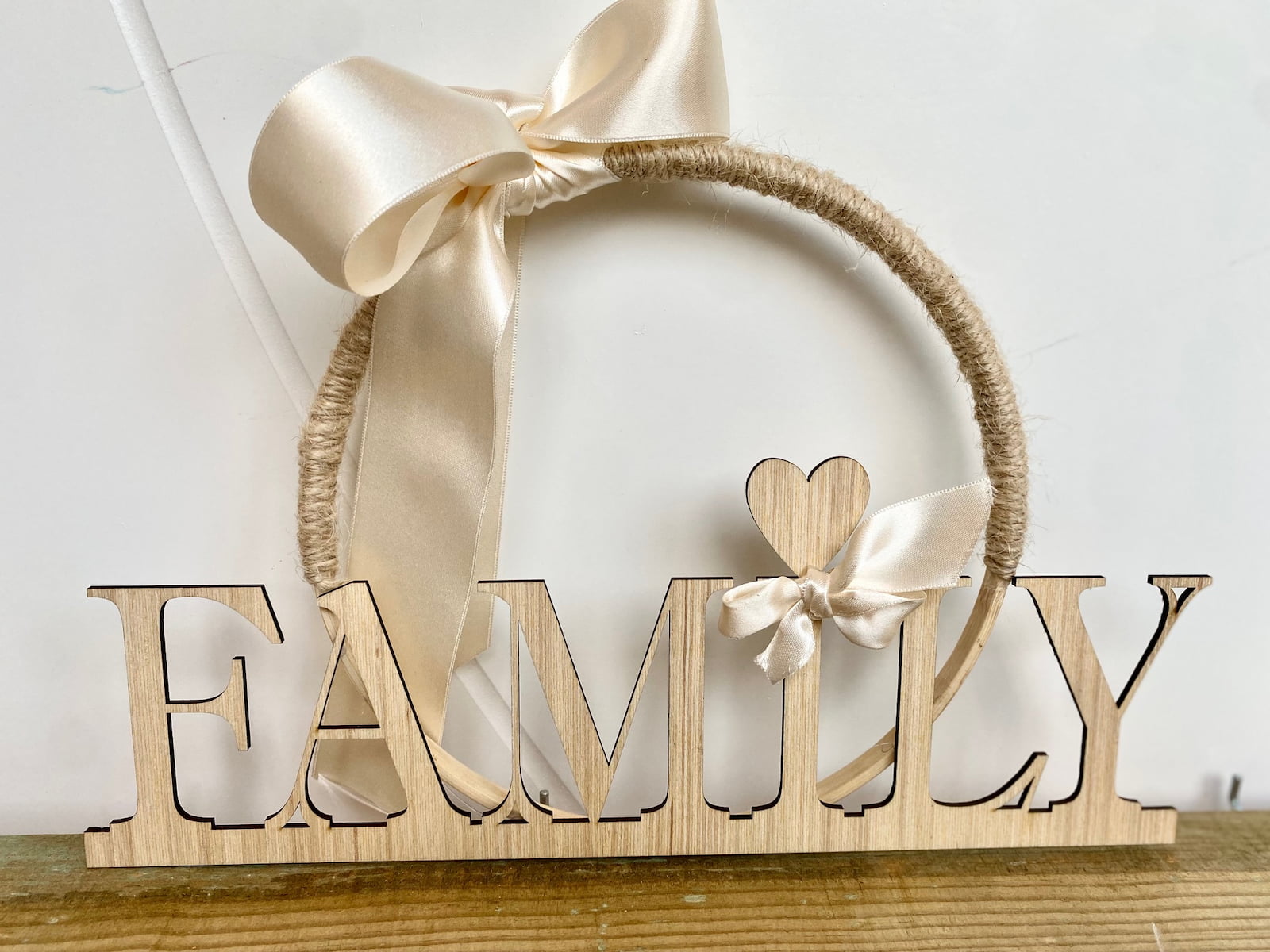 Déco "FAMILY" sur bois orné de fleurs séchées